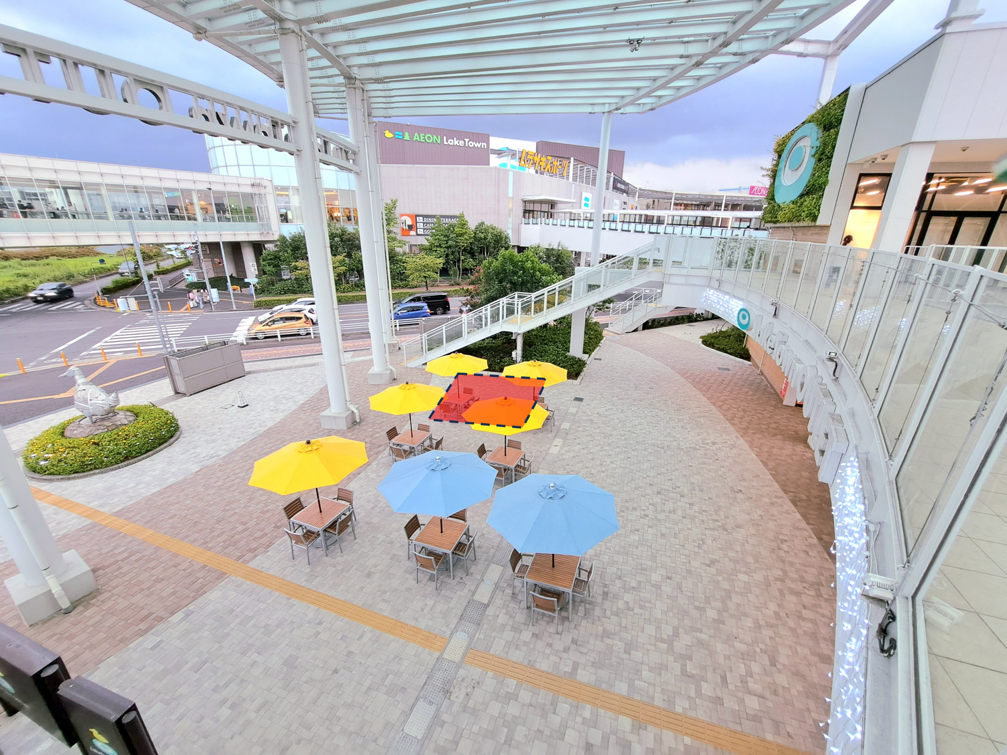 レイクタウンアウトレット正面スペースです。 レイクタウンkaze/moriをつなぐセンターブリッジからも良く見える場所となっております。