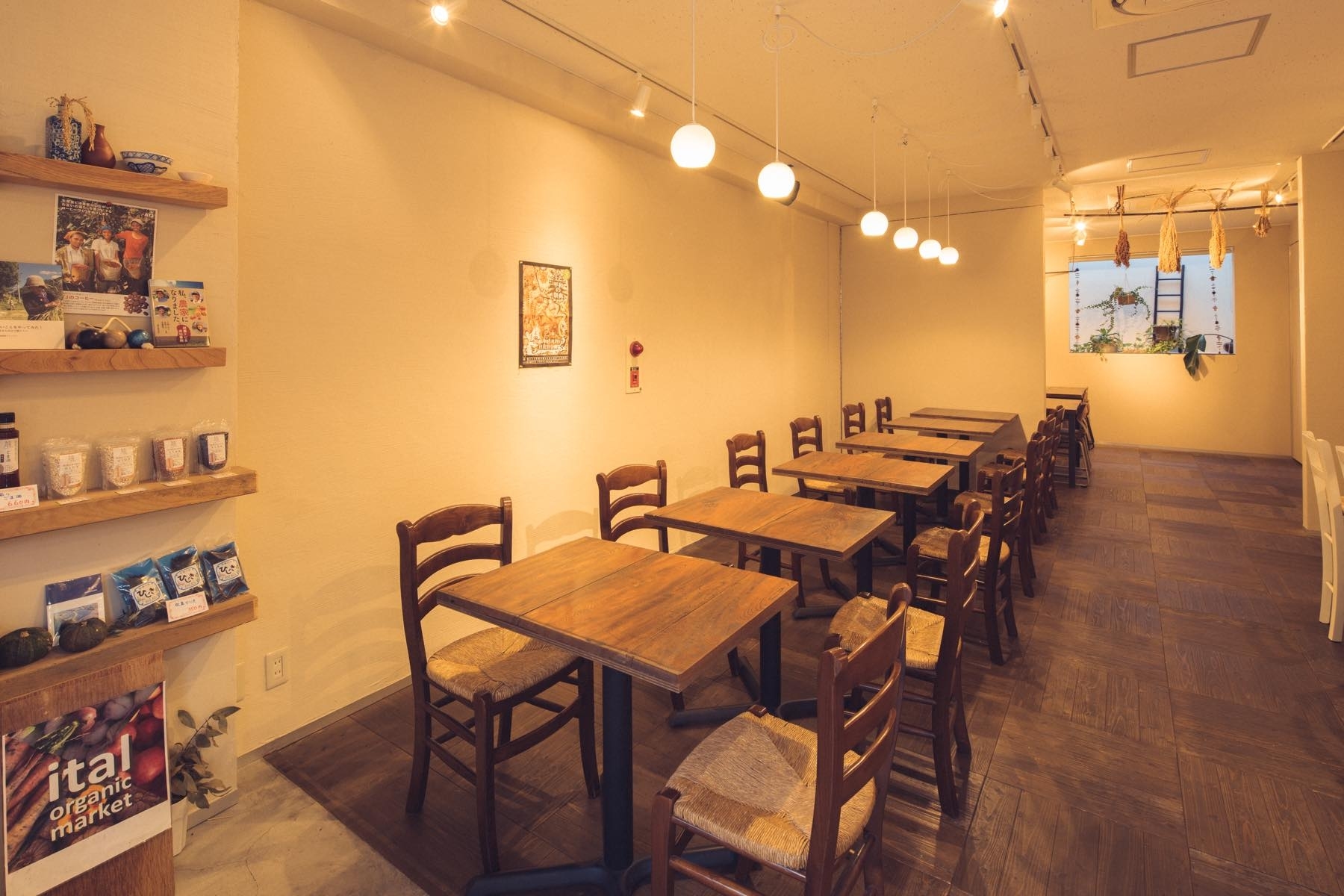 西日暮里にあるオーガニックカフェで、棚を使った展示やポップアップストアを行ってみませんか? 入り口すぐの棚だけでなく、カフェの奥に仕切りをしてギャラリー空間としてもご利用いただけます。 アートから雑貨まで、幅広い展示を行うことが可能です。 西日暮里にあるグリーンが多いオーガニックカフェ。 そんな落ち着く空間のカフェで、棚を使ったアクセサリーの展示やポップアップストアを行ってみませんか? 入り口すぐの棚だけでなく、カフェの奥に仕切りをしてギャラリー空間やワークショップスペースとしてもご利用いただけます。 利用料金は利用されるスペースの広さや曜日、時間帯によって変動しますので、利用したい広さ(or席数)とご希望日、時間帯を明記の上お問い合わせください。 4,000円/日〜は入り口すぐの棚をご利用の場合の料金となり、物販の場合は別途売上の10%を手数料としていただいています。 <営業時間> 【火曜日・日曜日】 ・ランチのみ 11:00~17:00(16:00 お食事LO、16:30 ドリンクLO) 【水曜日・木曜日】 ・ランチのみ 11:00~18:00(17:00 お食事LO、17:30 ドリンクLO) 【金曜日・土曜日】 ・ランチ 11:00~15:00(14:00 お食事LO、14:30 ドリンクLO) ・ディナー 18:00~21:00(20:30 LO) 【料金例】 ①土日祝で4人席を終日借りた場合(展示販売など) 15,000円/日〜 ②土日祝で4人席を1時間単位で借りた場合(ワークショップなど) →ピークタイム11時〜14時を外していただければお安くご案内できます。 ・14時〜17時 5,000円 ・13時〜17時 10,000円 ※学生料金あり。 上記はあくまで参考例ですので、お気軽に企画内容をご相談ください!