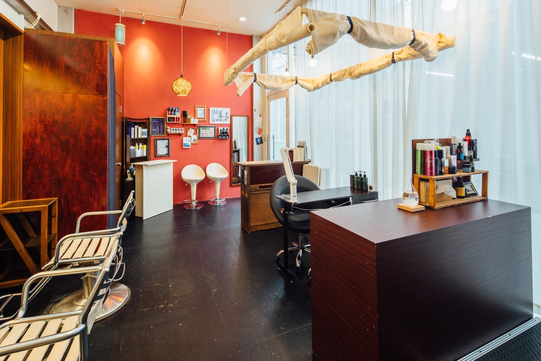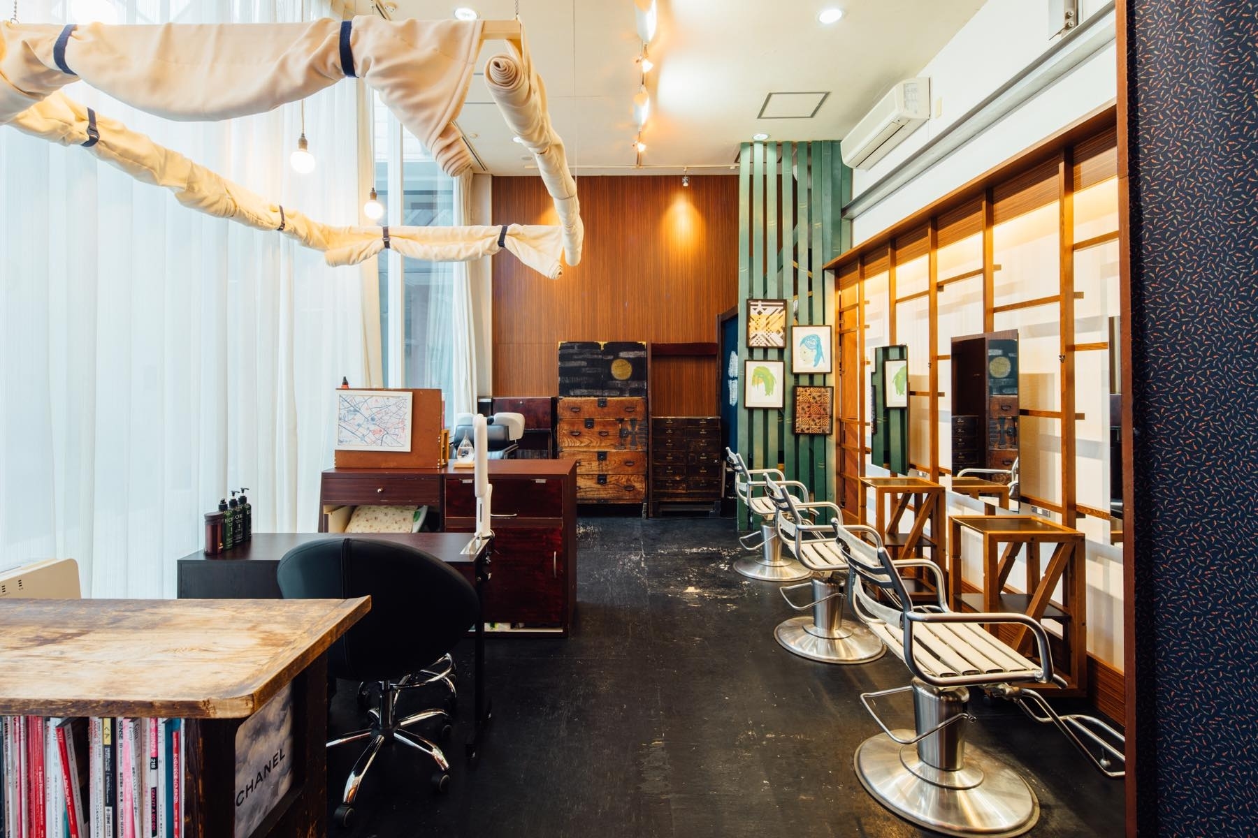 「代官山にある和モダンテイストな美容室」天井が高く、自然とリラックスできる雰囲気な美容室、癒し系隠れ家プライベートサロン。そんな人気の美容室で、展示会やポップアップストアを行ってみませんか?これまでにも、アート作品の壁面展示や棚を利用したハンドメイドの展示・販売なども行いました。 「代官山にある和モダンテイストな美容室」天井が高く、自然とリラックスできる雰囲気な美容室、癒し系隠れ家プライベートサロン。そんな人気の美容室で、展示会やポップアップストアを行ってみませんか? 近くには小・中・高学校、大型施設・イベント空間などもあり、家族連れの多い通り道です。 作品・商材、美容関連アイテムなど、様々な展示・販売が可能ですので、まずはあなたの企画をお聞かせください。(利用料金 相談可)