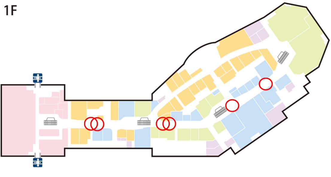 1番通行の多いメイン導線に設置されており、視認性は抜群です。2階の通行客も視認することができます。 価格 100,000円(税抜)/1週間 ※約9分に1回の放映となります。 ※指定データ納品・設定費用別途 掲載箇所 【1F】6箇所
