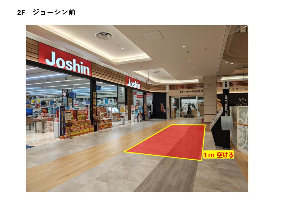 集客力のある上新電機前の催事場です。(実施例:携帯キャリア催事など) ・小スペース(W4,500mm×H2,900mm) ・電源あり 100V×1口×1箇所(周辺回路 合計1,500Wまで)