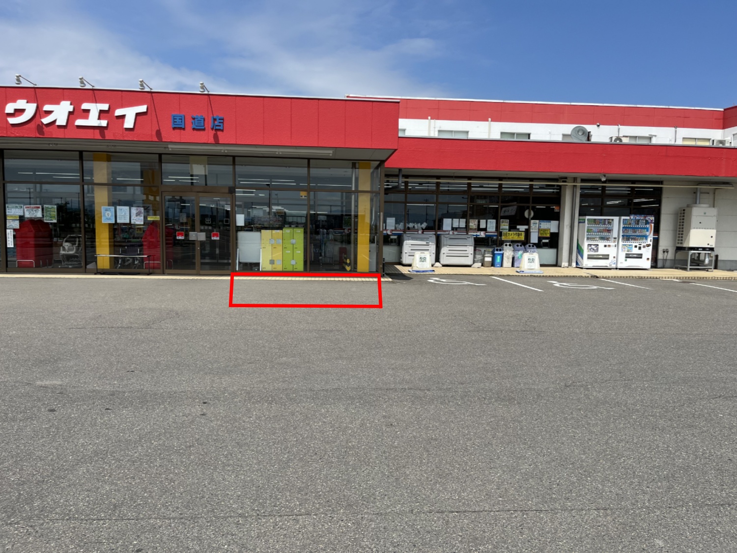 【ウオエイ白根国道店】プロモーションや食物販に最適な視認性の高い風除室前の屋外スペースの画像2